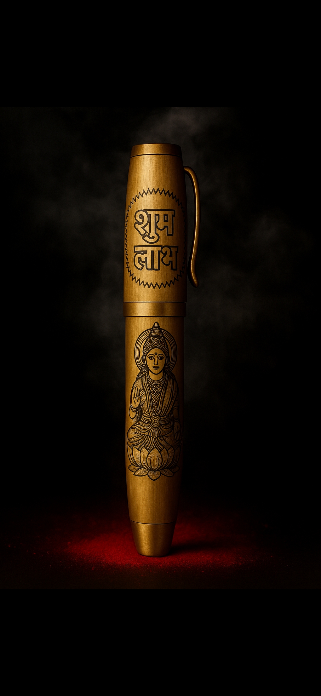 Experience divine prosperity with the Shubh Labh Laxmi Mata Pen – a premium golden brass pen engraved with the blessings of Goddess Laxmi. Symbolizing wealth, purity, and good fortune, this pen is more than a writing tool; it’s a sacred keepsake for devotees and professionals.